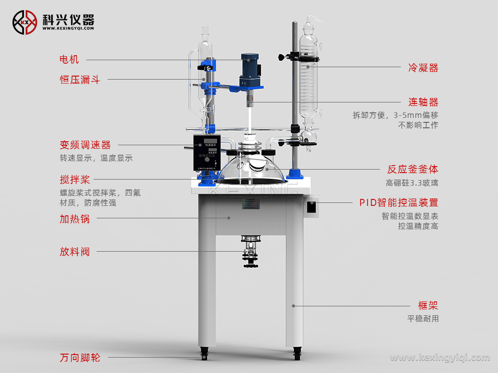 該系列反應(yīng)釜是我公司根據(jù)客戶實(shí)際需要及規(guī)定標(biāo)準(zhǔn)的新型單層玻璃反應(yīng)釜,其吸收了國(guó)內(nèi)外同類產(chǎn)品的優(yōu)點(diǎn),同時(shí)大膽創(chuàng)新,不僅使用方便(可一人方便移動(dòng),操作,清洗,安裝,拆卸),而且結(jié)構(gòu)新穎實(shí)用,外形美觀大方;誠(chéng)為現(xiàn)代化學(xué),精細(xì)化工,生物制藥,新材料合成等試驗(yàn)及生產(chǎn)的理想設(shè)備。該反應(yīng)釜工作原理:玻璃反應(yīng)釜內(nèi)放反應(yīng)物料,同時(shí)可抽真空做攪拌反應(yīng);外部水(油)浴鍋可加水或加熱油進(jìn)行加熱反應(yīng);并能控制反應(yīng)溶液的蒸發(fā)和回流,恒壓加料等功能。(可選配制冷組件,配合制冷源進(jìn)行低溫反應(yīng))