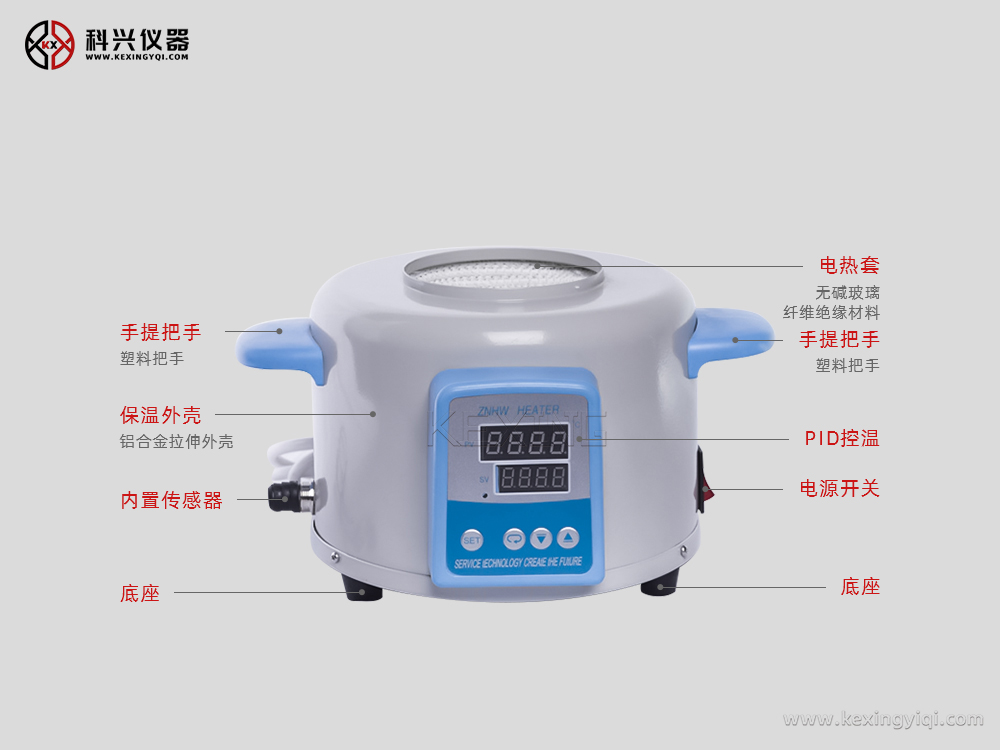 ZNHW型電熱套是用無堿玻璃纖維作絕緣材料,將Cr20Ni80合金絲簧裝置于其中,用硅酸鋁棉經(jīng)真空定型的半球形保溫體保溫,外殼一次性注塑成型,上蓋采用靜電噴塑工藝,由于采用球形加熱,可使容器受熱面積達到60%以上。控溫采用計算機芯片做主控單元,采用多重數(shù)字濾波電路,模糊PID控制算法,具有測量精度高,沖溫小,單鍵輕觸操作,雙屏顯示,內(nèi)、外熱電偶測溫,可控硅控制輸出,160-240V寬電壓電源,并有斷偶保護功能,具有升溫快、溫度高、操作簡便、經(jīng)久耐用的特點,是做準(zhǔn)確控溫加熱試驗的理想儀器。
